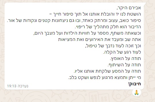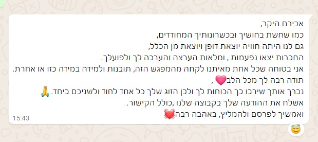 תודה אהוב. היית נפלא עם האנרגיות שלך. תודה על הזכות, ותודה על מה שהיית לנו ❤️
